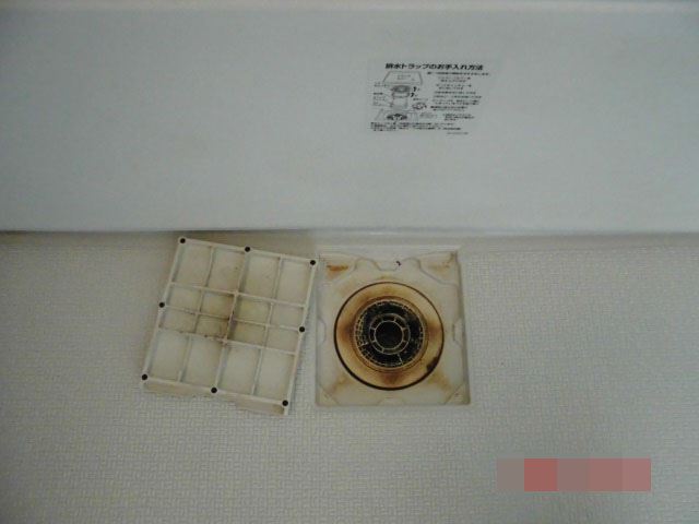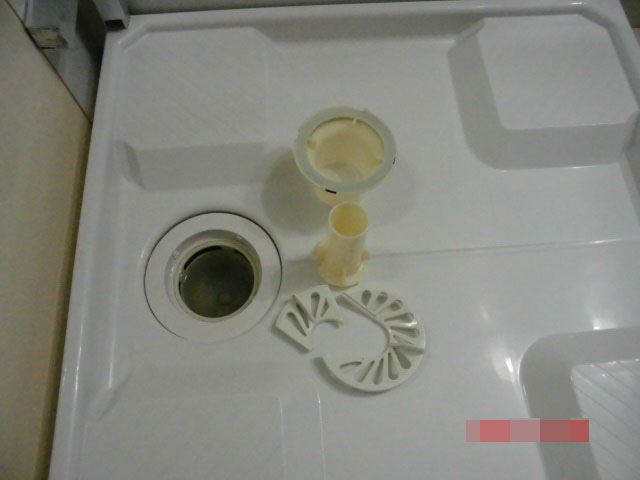 洗面ボウル、蛇口まわり、照明カバー、洗面台、棚の中、鏡、洗濯排水パン、換気扇、扉